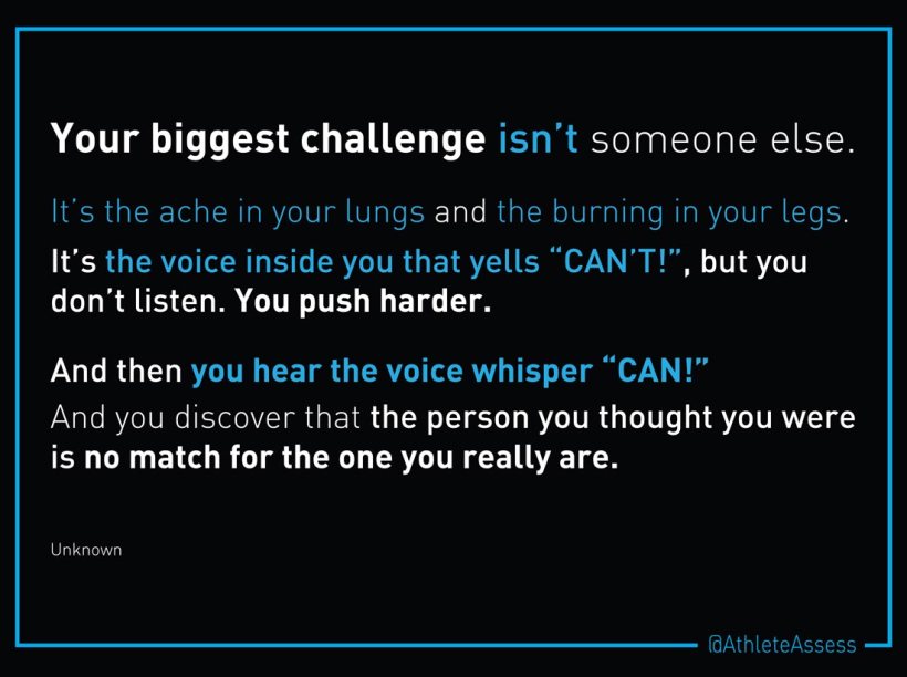 I love the chapter for this week….titled “Head Games” (Chapter 6). Like many of you, we’ve had periods of our life where that little voice inside our head keeps saying…”you can’t”…..and for the larger part of our life, we focus on telling that voice, “I can….”.